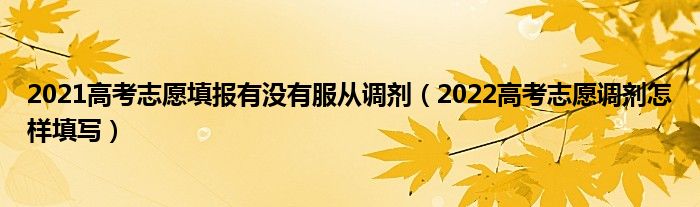 大家好,小高來為大家解答以上問題。2021高考志愿填報有沒有服從調(diào)劑,2022高考志愿調(diào)劑怎樣填寫很多人還不知道,現(xiàn)在讓我們一起來看看吧!