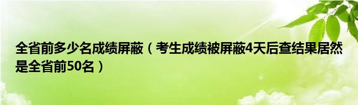大家好,小高來為大家解答以上問題。全省前多少名成績屏蔽,考生成績被屏蔽4天后查結(jié)果居然是全省前50名很多人還不知道,現(xiàn)在讓我們一起來看看吧!