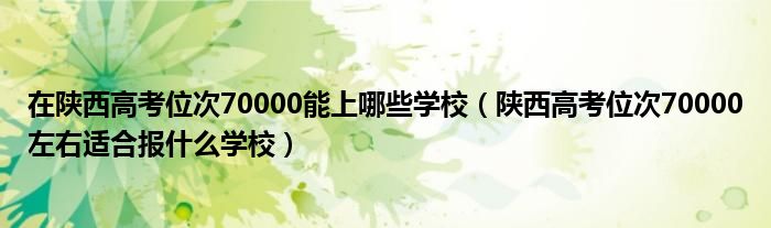 大家好,小高來(lái)為大家解答以上問(wèn)題。在陜西高考位次70000能上哪些學(xué)校,陜西高考位次70000左右適合報(bào)什么學(xué)校很多人還不知道,現(xiàn)在讓我們一起來(lái)看看吧!
