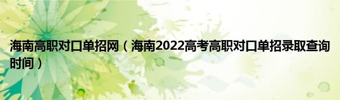 大家好,小高來為大家解答以上問題。海南高職對口單招網(wǎng),海南2022高考高職對口單招錄取查詢時間很多人還不知道,現(xiàn)在讓我們一起來看看吧!