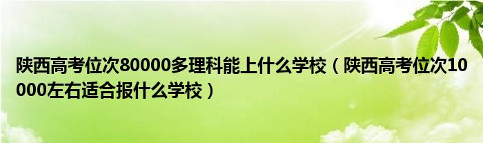 大家好,小高來為大家解答以上問題。陜西高考位次80000多理科能上什么學(xué)校,陜西高考位次10000左右適合報(bào)什么學(xué)校很多人還不知道,現(xiàn)在讓我們一起來看看吧!