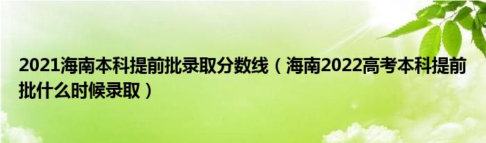大家好,小高來為大家解答以上問題。2021海南本科提前批錄取分數(shù)線,海南2022高考本科提前批什么時候錄取很多人還不知道,現(xiàn)在讓我們一起來看看吧!