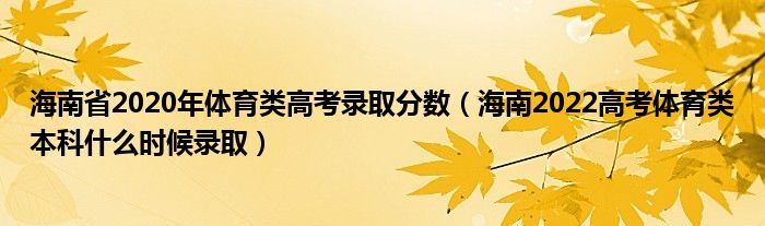 大家好,小高來(lái)為大家解答以上問(wèn)題。海南省2020年體育類高考錄取分?jǐn)?shù),海南2022高考體育類本科什么時(shí)候錄取很多人還不知道,現(xiàn)在讓我們一起來(lái)看看吧!