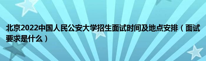 大家好,小高來為大家解答以上問題。北京2022中國人民公安大學招生面試時間及地點安排,面試要求是什么很多人還不知道,現(xiàn)在讓我們一起來看看吧!