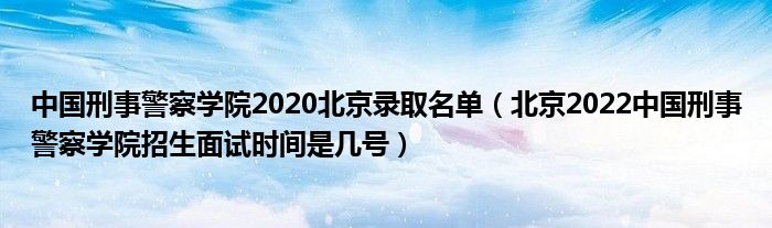 大家好,小高來(lái)為大家解答以上問(wèn)題。中國(guó)刑事警察學(xué)院2020北京錄取名單,北京2022中國(guó)刑事警察學(xué)院招生面試時(shí)間是幾號(hào)很多人還不知道,現(xiàn)在讓我們一起來(lái)看看吧!