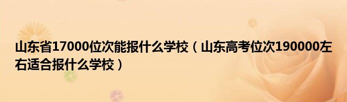 大家好,小高來為大家解答以上問題。山東省17000位次能報什么學(xué)校,山東高考位次190000左右適合報什么學(xué)校很多人還不知道,現(xiàn)在讓我們一起來看看吧!