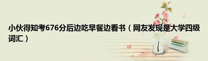 大家好,小高來(lái)為大家解答以上問(wèn)題。小伙得知考676分后邊吃早餐邊看書(shū),網(wǎng)友發(fā)現(xiàn)是大學(xué)四級(jí)詞匯很多人還不知道,現(xiàn)在讓我們一起來(lái)看看吧!