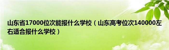 大家好,小高來為大家解答以上問題。山東省17000位次能報什么學(xué)校,山東高考位次140000左右適合報什么學(xué)校很多人還不知道,現(xiàn)在讓我們一起來看看吧!