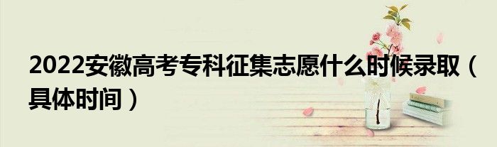 大家好,小高來為大家解答以上問題。2022安徽高考??普骷驹甘裁磿r候錄取,具體時間很多人還不知道,現(xiàn)在讓我們一起來看看吧!