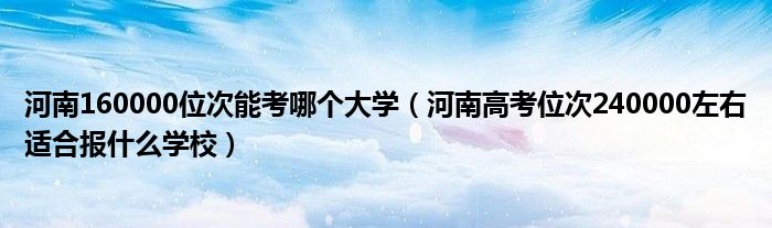 大家好,小高來為大家解答以上問題。河南160000位次能考哪個大學,河南高考位次240000左右適合報什么學校很多人還不知道,現(xiàn)在讓我們一起來看看吧!