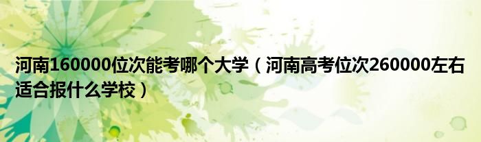 大家好,小高來為大家解答以上問題。河南160000位次能考哪個(gè)大學(xué),河南高考位次260000左右適合報(bào)什么學(xué)校很多人還不知道,現(xiàn)在讓我們一起來看看吧!