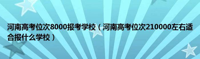 大家好,小高來(lái)為大家解答以上問(wèn)題。河南高考位次8000報(bào)考學(xué)校,河南高考位次210000左右適合報(bào)什么學(xué)校很多人還不知道,現(xiàn)在讓我們一起來(lái)看看吧!