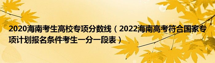 大家好,小高來為大家解答以上問題。2020海南考生高校專項分數(shù)線,2022海南高考符合國家專項計劃報名條件考生一分一段表很多人還不知道,現(xiàn)在讓我們一起來看看吧!