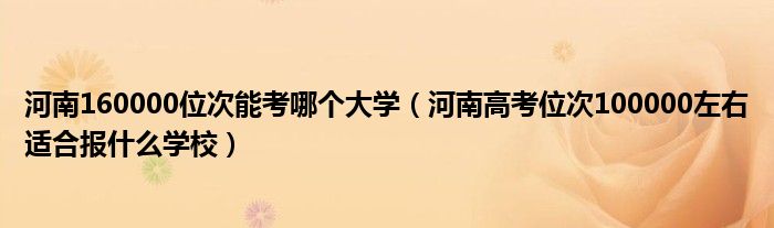 大家好,小高來為大家解答以上問題。河南160000位次能考哪個大學,河南高考位次100000左右適合報什么學校很多人還不知道,現(xiàn)在讓我們一起來看看吧!
