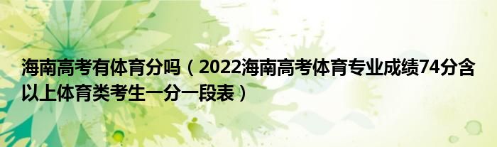 大家好,小高來為大家解答以上問題。海南高考有體育分嗎,2022海南高考體育專業(yè)成績74分含以上體育類考生一分一段表很多人還不知道,現(xiàn)在讓我們一起來看看吧!