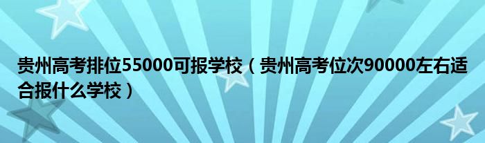 大家好,小高來為大家解答以上問題。貴州高考排位55000可報學(xué)校,貴州高考位次90000左右適合報什么學(xué)校很多人還不知道,現(xiàn)在讓我們一起來看看吧!