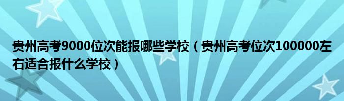 大家好,小高來(lái)為大家解答以上問(wèn)題。貴州高考9000位次能報(bào)哪些學(xué)校,貴州高考位次100000左右適合報(bào)什么學(xué)校很多人還不知道,現(xiàn)在讓我們一起來(lái)看看吧!