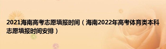 大家好,小高來為大家解答以上問題。2021海南高考志愿填報時間,海南2022年高考體育類本科志愿填報時間安排很多人還不知道,現(xiàn)在讓我們一起來看看吧!