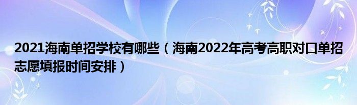 大家好,小高來(lái)為大家解答以上問(wèn)題。2021海南單招學(xué)校有哪些,海南2022年高考高職對(duì)口單招志愿填報(bào)時(shí)間安排很多人還不知道,現(xiàn)在讓我們一起來(lái)看看吧!