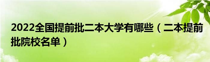 大家好,小高來(lái)為大家解答以上問(wèn)題。2022全國(guó)提前批二本大學(xué)有哪些,二本提前批院校名單很多人還不知道,現(xiàn)在讓我們一起來(lái)看看吧!