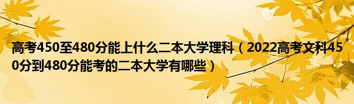 大家好,小高來(lái)為大家解答以上問題。高考450至480分能上什么二本大學(xué)理科,2022高考文科450分到480分能考的二本大學(xué)有哪些很多人還不知道,現(xiàn)在讓我們一起來(lái)看看吧!