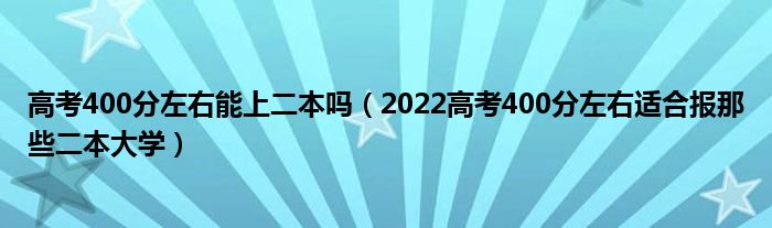 大家好,小高來為大家解答以上問題。高考400分左右能上二本嗎,2022高考400分左右適合報那些二本大學(xué)很多人還不知道,現(xiàn)在讓我們一起來看看吧!