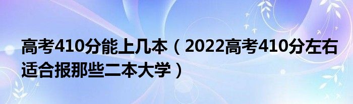 大家好,小高來(lái)為大家解答以上問(wèn)題。高考410分能上幾本,2022高考410分左右適合報(bào)那些二本大學(xué)很多人還不知道,現(xiàn)在讓我們一起來(lái)看看吧!