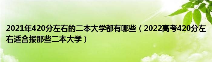 大家好,小高來為大家解答以上問題。2021年420分左右的二本大學(xué)都有哪些,2022高考420分左右適合報(bào)那些二本大學(xué)很多人還不知道,現(xiàn)在讓我們一起來看看吧!