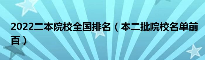 大家好,小高來為大家解答以上問題。2022二本院校全國排名,本二批院校名單前百很多人還不知道,現(xiàn)在讓我們一起來看看吧!