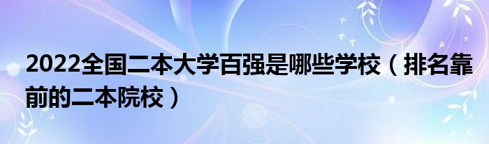 大家好,小高來(lái)為大家解答以上問(wèn)題。2022全國(guó)二本大學(xué)百?gòu)?qiáng)是哪些學(xué)校,排名靠前的二本院校很多人還不知道,現(xiàn)在讓我們一起來(lái)看看吧!