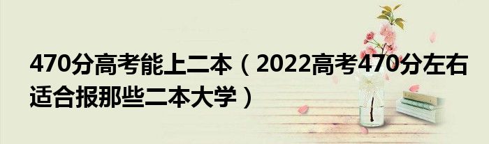 大家好,小高來為大家解答以上問題。470分高考能上二本,2022高考470分左右適合報那些二本大學(xué)很多人還不知道,現(xiàn)在讓我們一起來看看吧!