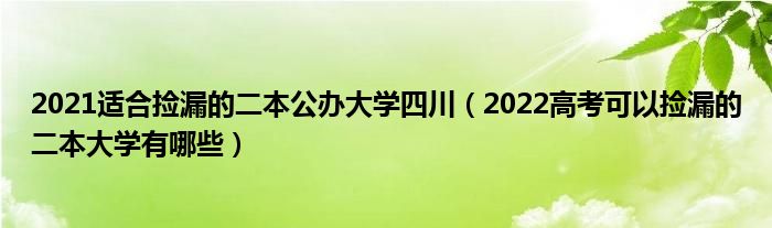 大家好,小高來為大家解答以上問題。2021適合撿漏的二本公辦大學(xué)四川,2022高考可以撿漏的二本大學(xué)有哪些很多人還不知道,現(xiàn)在讓我們一起來看看吧!