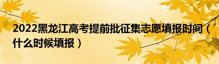 大家好,小高來為大家解答以上問題。2022黑龍江高考提前批征集志愿填報時間,什么時候填報很多人還不知道,現在讓我們一起來看看吧!