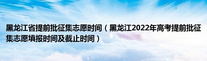 一、2022年黑龍江提前批征集志愿填報(bào)時(shí)間