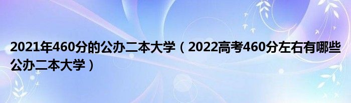 大家好,小高來為大家解答以上問題。2021年460分的公辦二本大學,2022高考460分左右有哪些公辦二本大學很多人還不知道,現(xiàn)在讓我們一起來看看吧!