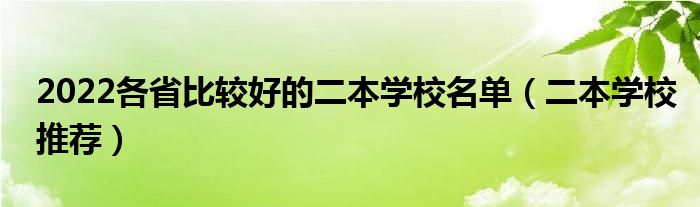 大家好,小高來為大家解答以上問題。2022各省比較好的二本學(xué)校名單,二本學(xué)校推薦很多人還不知道,現(xiàn)在讓我們一起來看看吧!