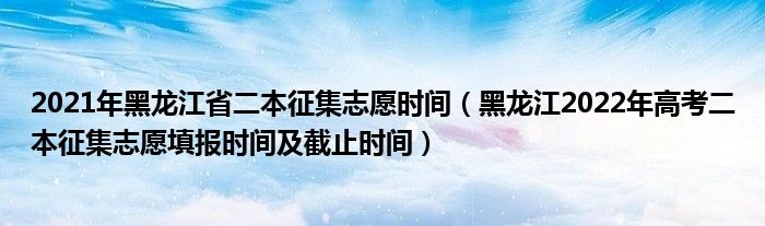 大家好,小高來為大家解答以上問題。2021年黑龍江省二本征集志愿時間,黑龍江2022年高考二本征集志愿填報時間及截止時間很多人還不知道,現(xiàn)在讓我們一起來看看吧!
