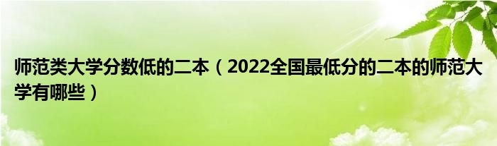 大家好,小高來為大家解答以上問題。師范類大學(xué)分?jǐn)?shù)低的二本,2022全國最低分的二本的師范大學(xué)有哪些很多人還不知道,現(xiàn)在讓我們一起來看看吧!