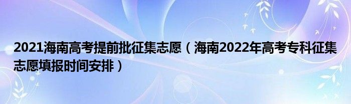 大家好,小高來為大家解答以上問題。2021海南高考提前批征集志愿,海南2022年高考??普骷驹柑顖髸r間安排很多人還不知道,現(xiàn)在讓我們一起來看看吧!