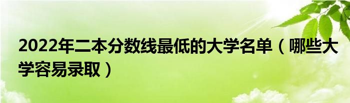 大家好,小高來(lái)為大家解答以上問(wèn)題。2022年二本分?jǐn)?shù)線最低的大學(xué)名單,哪些大學(xué)容易錄取很多人還不知道,現(xiàn)在讓我們一起來(lái)看看吧!