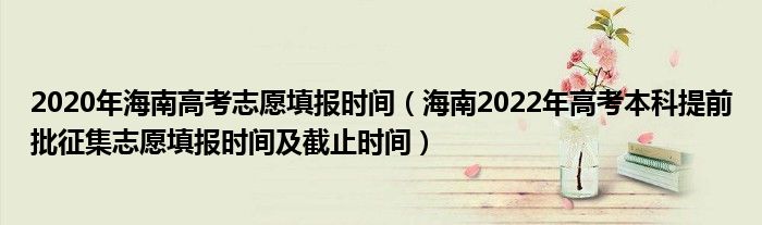 大家好,小高來(lái)為大家解答以上問(wèn)題。2020年海南高考志愿填報(bào)時(shí)間,海南2022年高考本科提前批征集志愿填報(bào)時(shí)間及截止時(shí)間很多人還不知道,現(xiàn)在讓我們一起來(lái)看看吧!