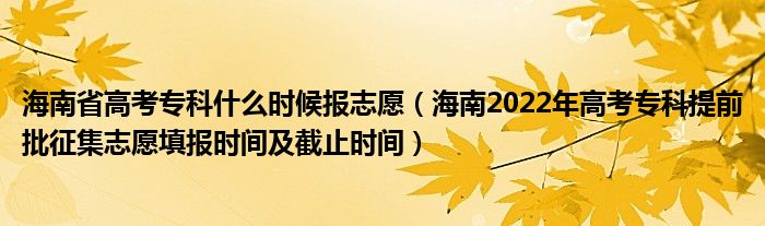 大家好,小高來為大家解答以上問題。海南省高考??剖裁磿r候報志愿,海南2022年高考??铺崆芭骷驹柑顖髸r間及截止時間很多人還不知道,現(xiàn)在讓我們一起來看看吧!