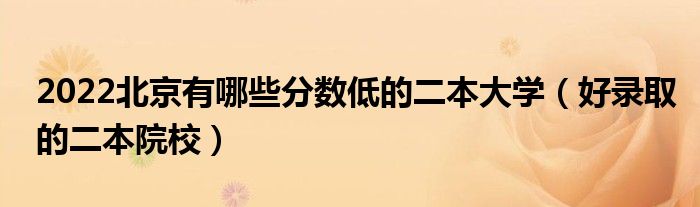大家好,小高來為大家解答以上問題。2022北京有哪些分數(shù)低的二本大學,好錄取的二本院校很多人還不知道,現(xiàn)在讓我們一起來看看吧!