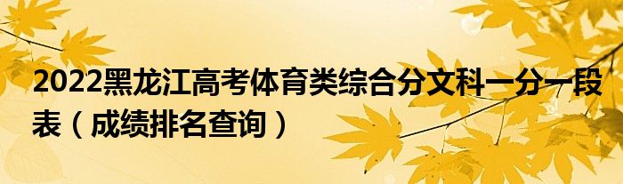 大家好,小高來(lái)為大家解答以上問(wèn)題。2022黑龍江高考體育類綜合分文科一分一段表,成績(jī)排名查詢很多人還不知道,現(xiàn)在讓我們一起來(lái)看看吧!