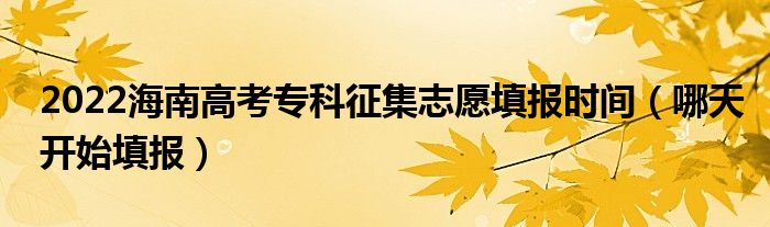 大家好,小高來為大家解答以上問題。2022海南高考專科征集志愿填報(bào)時(shí)間,哪天開始填報(bào)很多人還不知道,現(xiàn)在讓我們一起來看看吧!