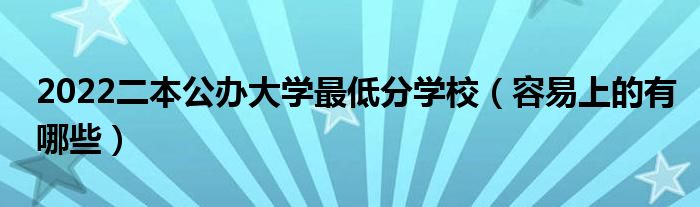 大家好,小高來為大家解答以上問題。2022二本公辦大學(xué)最低分學(xué)校,容易上的有哪些很多人還不知道,現(xiàn)在讓我們一起來看看吧!