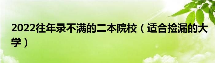 大家好,小高來為大家解答以上問題。2022往年錄不滿的二本院校,適合撿漏的大學(xué)很多人還不知道,現(xiàn)在讓我們一起來看看吧!
