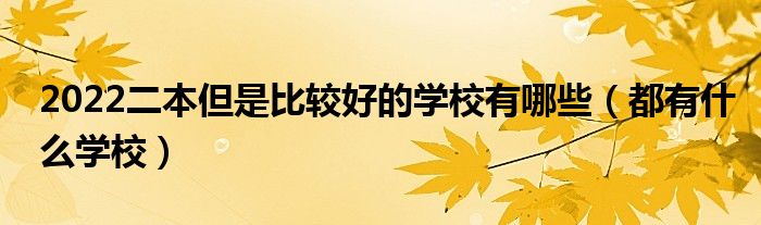 大家好,小高來為大家解答以上問題。2022二本但是比較好的學(xué)校有哪些,都有什么學(xué)校很多人還不知道,現(xiàn)在讓我們一起來看看吧!