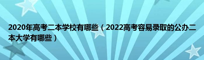 大家好,小高來為大家解答以上問題。2020年高考二本學校有哪些,2022高考容易錄取的公辦二本大學有哪些很多人還不知道,現(xiàn)在讓我們一起來看看吧!