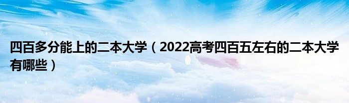 大家好,小高來為大家解答以上問題。四百多分能上的二本大學(xué),2022高考四百五左右的二本大學(xué)有哪些很多人還不知道,現(xiàn)在讓我們一起來看看吧!